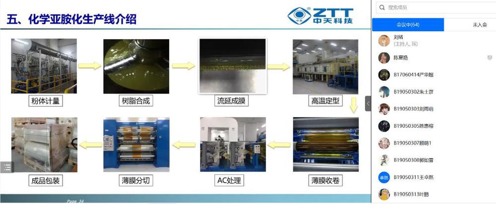 本次报告的主题为:浅谈聚酰亚胺薄膜应用及其产业发展。杨继明博士从聚酰亚胺薄膜的发展历史、国内外研究现状、聚酰亚胺薄膜加工工艺和应用领域等方面,深入浅出地介绍了中天科技围绕如何有效提高功能性聚酰亚胺薄膜材料生产加工工艺等问题提出的创新方案、开展的创新研究工作和获得的新成果。老师和同学们在认真听取了杨博士的精彩讲座,反响强烈,并与杨博士深入探讨高性能的聚酰亚胺材料的潜在研究方向和产业化前景等诸多问题。