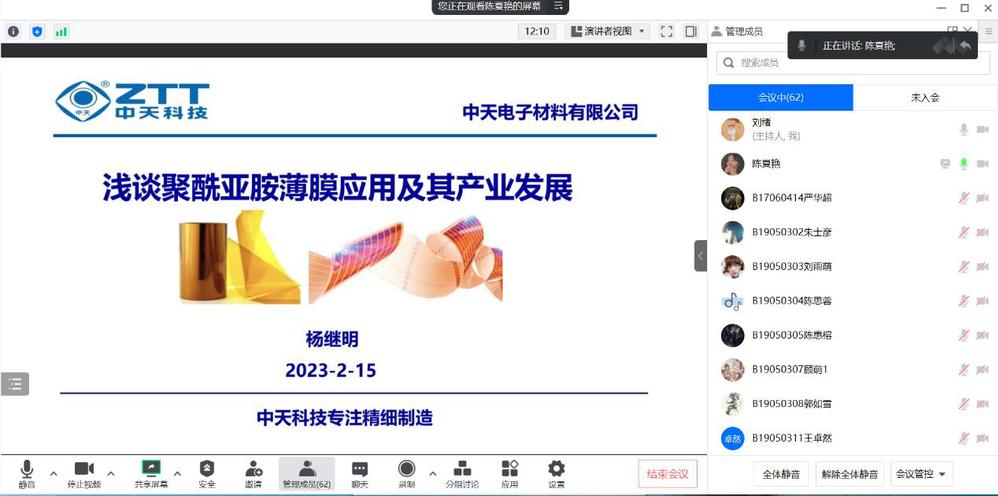 2023年2月16日下午,化学与生命科学学院邀请江苏南通中天科技集团中天电子材料有限公司总工程师杨继明博士为学院师生做线上报告。吃瓜爆料黑料官网反差婊的从事新材料制备与应用相关研究工作的老师、研究生和本科生参加了本次报告。