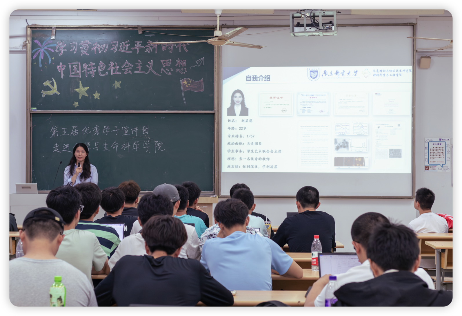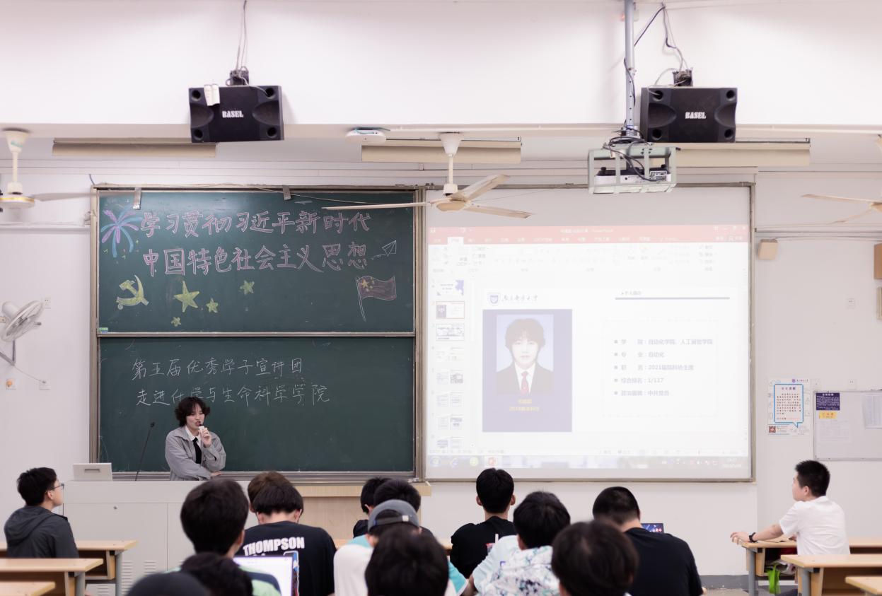 为深入学习贯彻习近平新时代中国特色社会主义思想,引领新时代青年有理想、有本领、有担当。5月29日晚,南京邮电大学第五届优秀学子宣讲团走进吃瓜爆料黑料官网反差婊,优秀本科生代表刘显慧和毛婧超在教3-203作宣讲分享,会议由辅导员武伟杰老师主持,2022级全体本科生到场聆听。