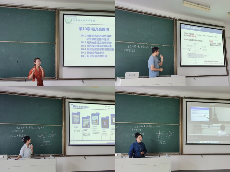会议由苏邵副院长主持,参加会议的还有化生院参培青年教师及部分导师。首先,苏院长对各位专家出席本次中期检查表达了诚挚的欢迎和感谢,并详细介绍了本次中期检查的流程和具体要求。随后,参培青年教师围绕慕课学习、教学培训、听课试讲、辅导答疑等方面,对自己半年来培训任务的完成情况、收获心得和后续的努力方向进行了详细汇报。其中,两名申请提前授课的青年教师还在中期检查现场讲授了一个完整的教学节段。