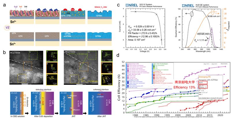 项目主要成果展示:(a-c)及NREL发布的各类太阳能电池的历史效率统计图(d)