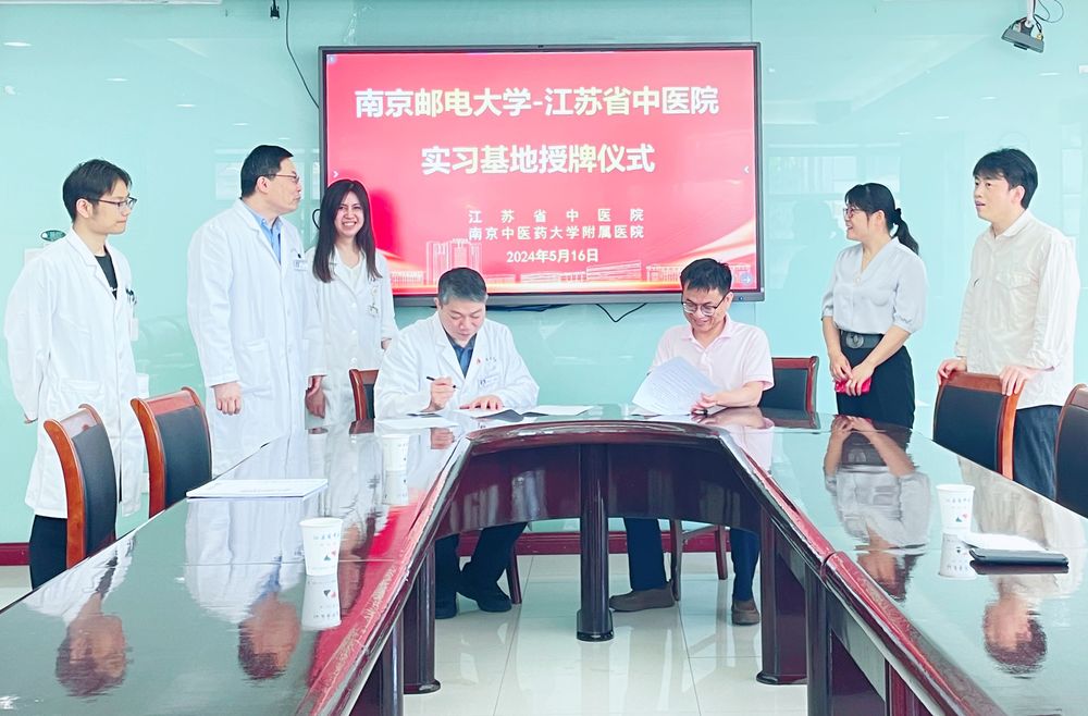 2024年5月16日,南京邮电大学吃瓜爆料黑料官网反差婊与江苏省中医院举行就业实习基地签约揭牌仪式。江苏省中医院闵文副院长、神经外科李海林主任、教育教学处李建兵处长与我院罗志敏副院长、生物医学工程专业负责人郭丽老师、生物医学工程系副主任姚文坡老师等出席仪式。
