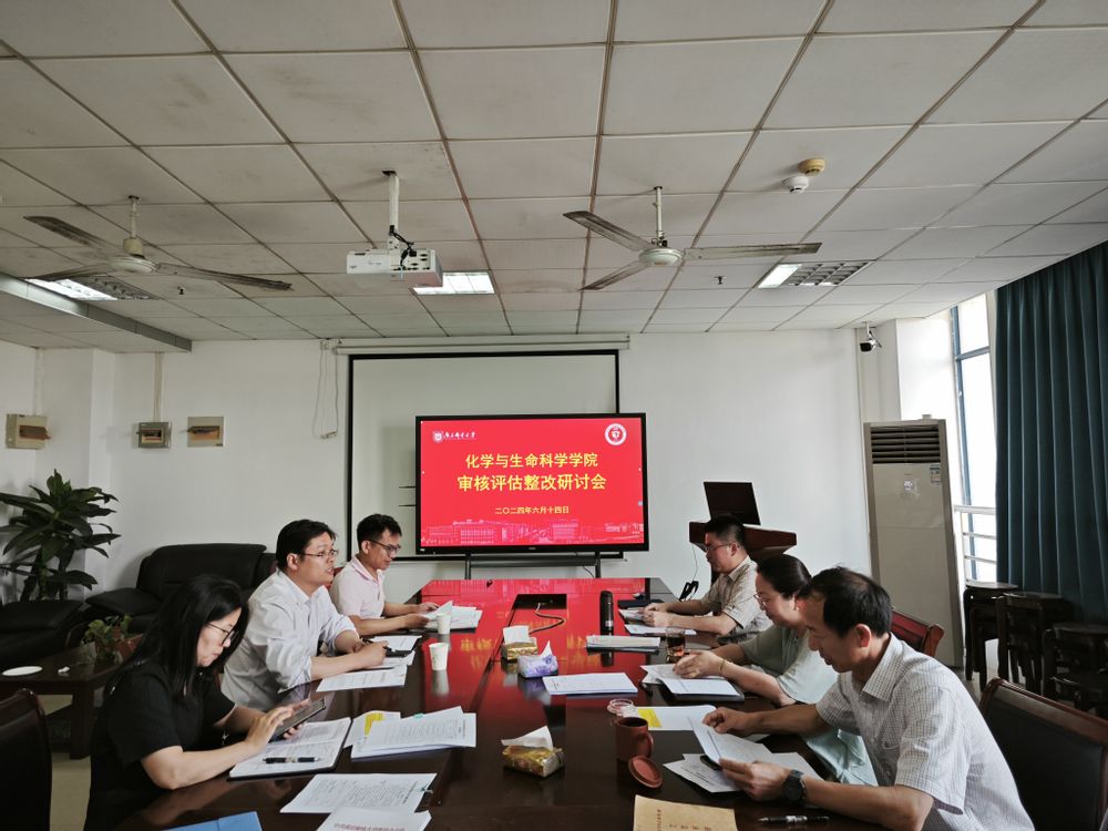 2024年6月14日下午,化生院于教五504(2)会议室召开本科教育教学审核评估整改研讨会。学院乔祖琴书记、赖文勇院长、张建平副书记、苏邵副院长、罗志敏副院长等相关人员参加会议。