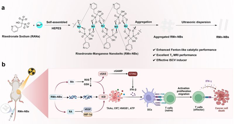 二维利塞膦酸-锰纳米带作为放疗佐剂增强肿瘤放射免疫治疗