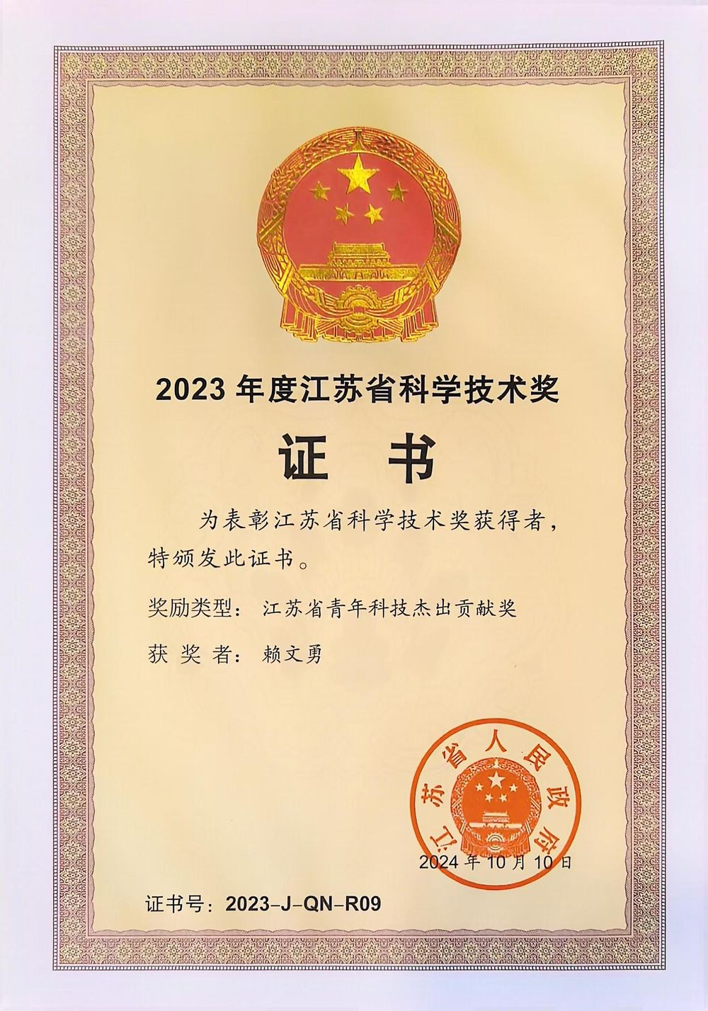 江苏省青年科技杰出贡献奖是江苏省科学技术奖2019年首次增设的奖项,每两年(单数年)评审一次,每次不超过10名,旨在表彰45周岁以下、在江苏工作单位从事原始创新、技术开发、成果转化或创新创业等科技创新活动并为江苏社会经济发展作出杰出贡献的一线青年科技工作者。获奖者热爱祖国、学风正派,在科学研究、工程技术开发、科学技术普及、科技成果推广转化、科技管理与创新等方面取得了优异成绩,为推进江苏科技创新和高质量发展作出了突出贡献。