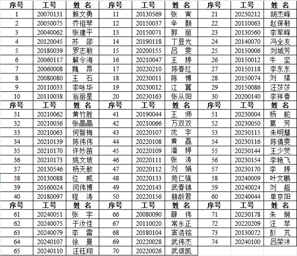 按照学校教师工作部《关于开展2024年度教职工思想政治与师德师风考核的通知》文件要求,经个人自评、学院党委综合评定,共有74位教师考核合格,具体名单如下: