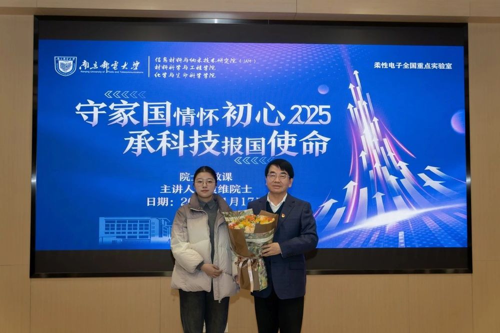 黄维院士以“守家国情怀初心,承科技报国使命”为题,从“家国情怀是知识分子的人生底色”“担当作为是知识分子的动力源泉”“开拓创新是知识分子的时代责任”三个维度讲授思政课。