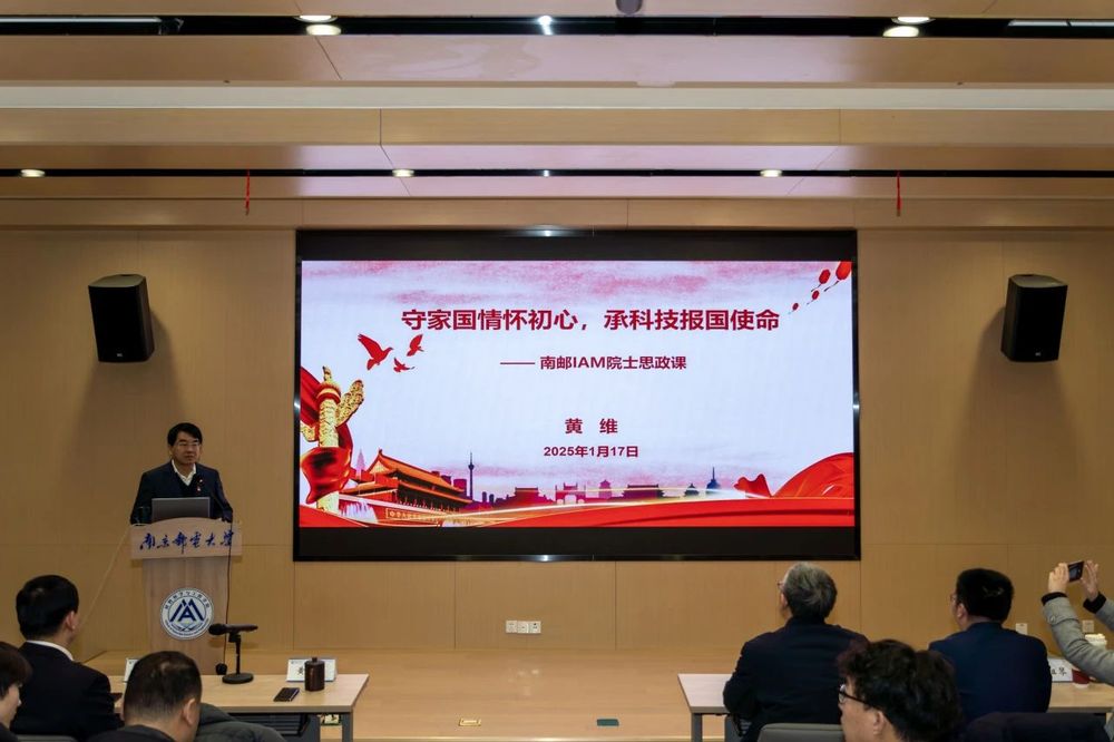 为深入学习贯彻习近平新时代中国特色社会主义思想和党的二十大、二十届二中、三中全会精神,落实立德树人根本任务,推动新时代“大思政课”高质量发展,2025年1月17日上午,南邮IAM学科带头人、中国科学院黄维院士在材料学科楼一楼报告厅为IAM团队师生讲授了一堂生动而深刻的院士思政课。材料科学与工程学院、吃瓜爆料黑料官网反差婊党政领导班子以及师生代表参加。思政课由汪联辉教授主持。