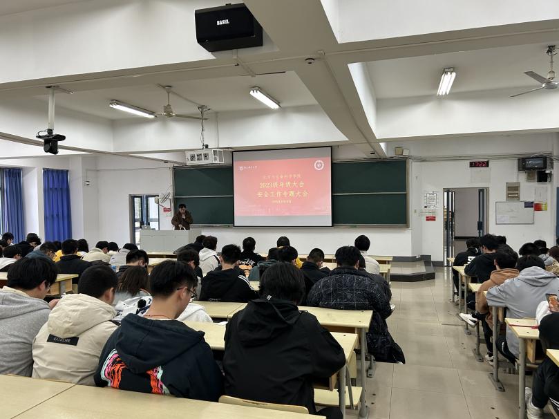 为全面贯彻学校安全稳定工作部署,提升学生安全防范意识,构建平安和谐校园,3月17日,化生学院组织召开2023级本科生年级大会暨安全工作专题大会,会议由辅导员武颂凯主持,通过系统化安全教育与精细化制度管理双向发力,为新学期学生工作筑牢安全基石。