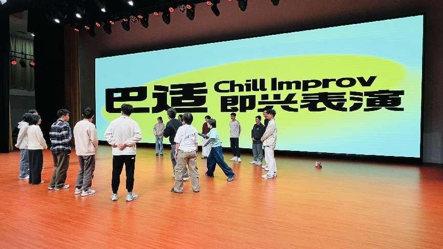 即兴课堂:在错误中开出创意之花。下午的体验课上,巴适即兴的演员们带领20余名学生打破常规思维。通过"自由联想""场景接龙"等趣味训练,参与者们逐渐放下"怕说错"的心理包袱。"当队友把纸杯想象成外星飞船时,我本能想否定,但遵循YES AND原则接续故事后,竟发展出意想不到的精彩剧情!"同学们感慨道。主讲人阿Ken强调:"即兴没有错误答案,每个'意外'都是礼物。"