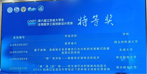 2025年5月24日,第六届江苏省大学生生物医学工程创新设计竞赛决赛在常州西太湖科技产业园圆满落幕。化生院多支参赛队伍凭借前沿的科研设计、扎实的技术应用与突出的实践能力,在省内24所高校的298支参赛队伍中表现亮眼:两支队伍斩获赛事2项特等奖(仅4项),二等奖项目1项,及多项三等奖,获奖数量与质量创学院历史新高。