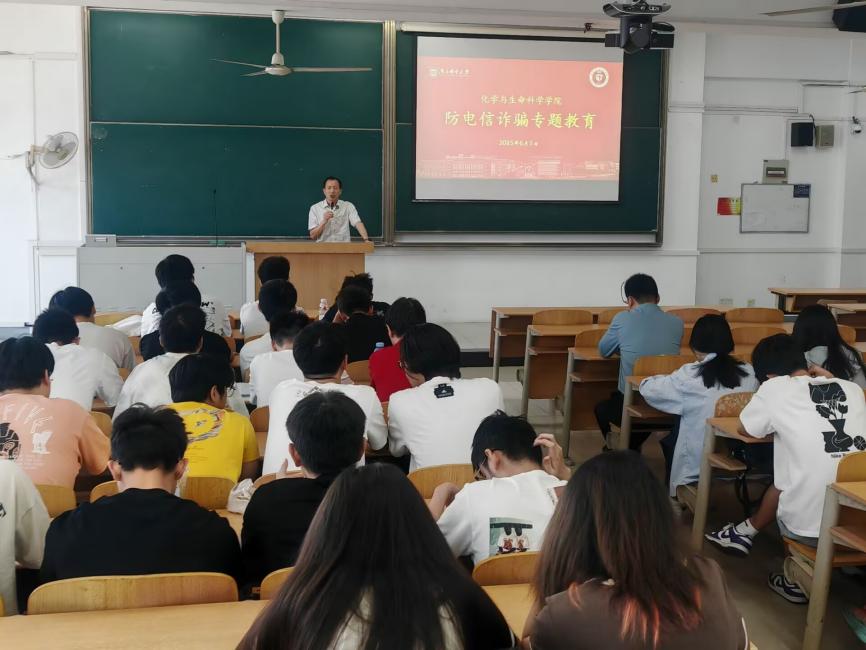 随后,辅导员武颂凯聚焦消防安全与反诈防骗。他结合高校火灾事故案例视频,剖析了宿舍违禁电器、实验室操作不规范、电动车违规充电等隐患,提醒学生“消防没有旁观者,你我都是践行人”,并指导了灭火器“提、拔、握、压”操作及火场逃生技巧。针对期末高发的电信诈骗,他重点解析了“冒充公检法”“刷单返利”和“AI换脸诈骗”手法,指出骗子常利用考试焦虑、兼职需求设陷,现场演示了国家反诈中心APP的“预警拦截”功能。学院同步启动了“无诈班级”创建计划,各班班长签订安全责任书,负责落实“三个一”行动:开展主题班会、核查全员APP安装、建立重点关注人群台账。