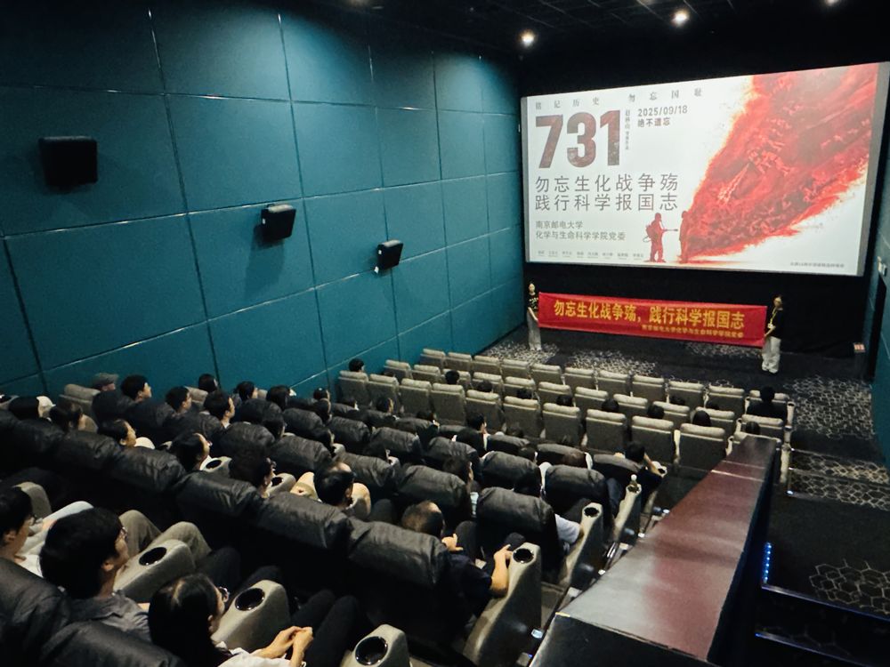 为铭记历史、缅怀先烈,传承和弘扬爱国主义精神,在纪念中国人民抗日战争暨世界反法西斯战争胜利80周年之际,吃瓜爆料黑料官网反差婊党委开展“勿忘生化战争殇,践行科学报国志”主题党日活动,组织全体教师党员集中观看历史题材电影《731》。
